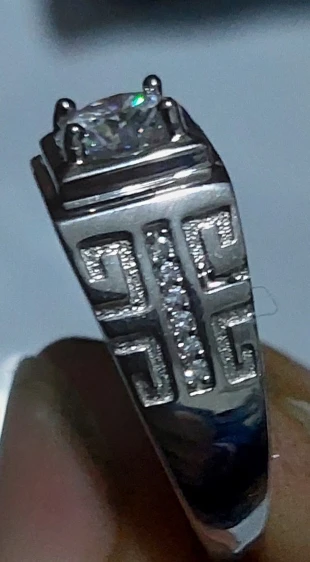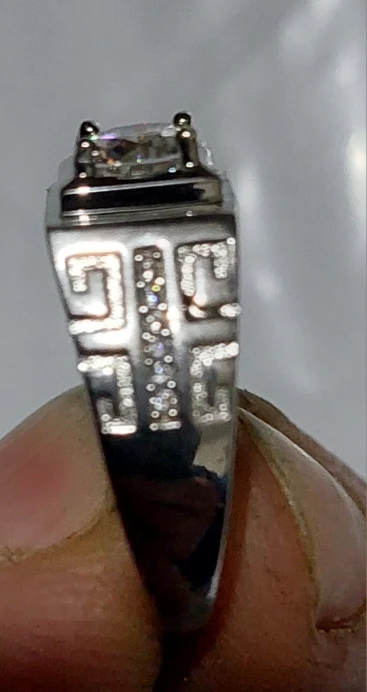 Frank Stehr Congratulations, beautiful dimensionless ring of medium parameters. The central stone shines in different colors, stands out with diamond brilliance. The ring has a stamp Pt 950. Along with the order came a certificate for Moissanite, a gift bag, and a box with lighting. Satisfied with the order, fast delivery, recommend the seller.
